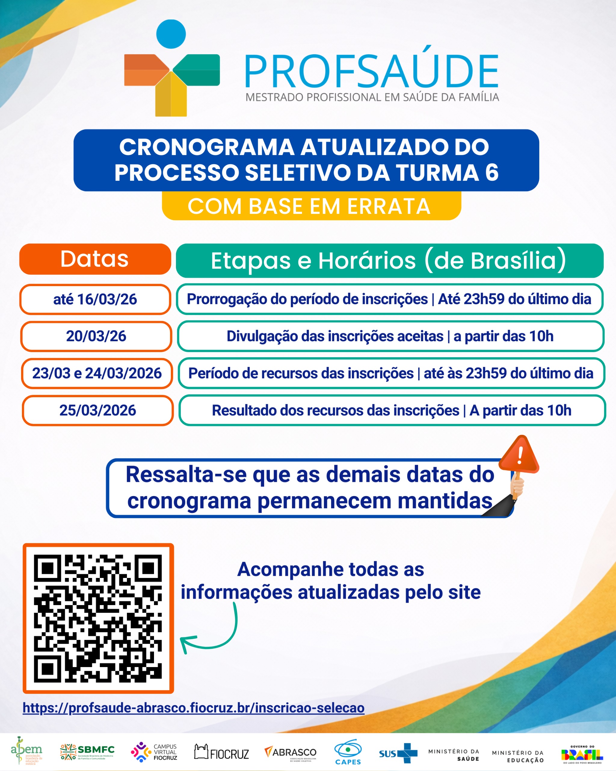 ATENÇÃO - ERRATA N°2 - EDITAL DE SELEÇÃO DO MESTRADO PROFISSIONAL EM SAÚDE DA FAMÍLIA - TURMA 6